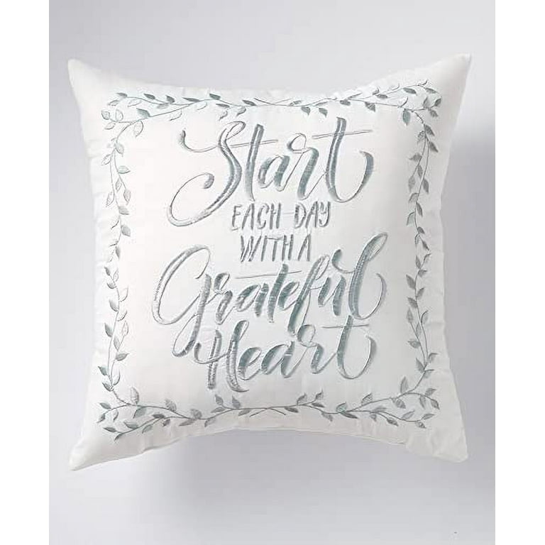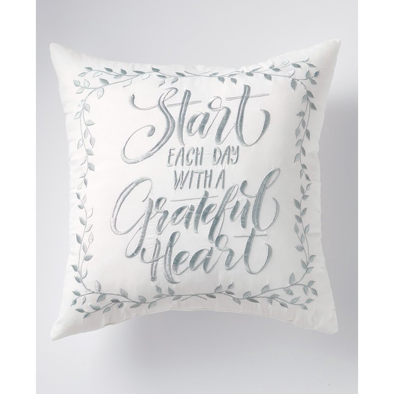Embroidered Throw Pillow with Saying “Start with a Grateful