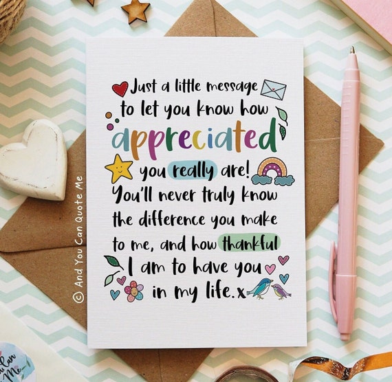 Appreciated, Thank You Card, Friendship Card, Thank You Colleague