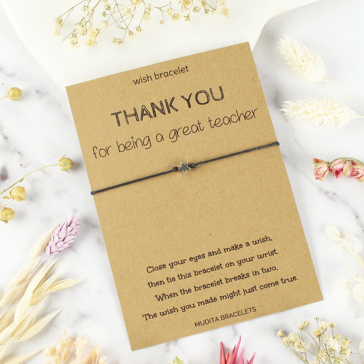 Thank you teacher gift & card wish bracelet